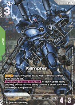 Increase this Unit's AP by an amount equal to the number of (Cyclops Team) Pilot cards/Command cards with unique names in your trash.