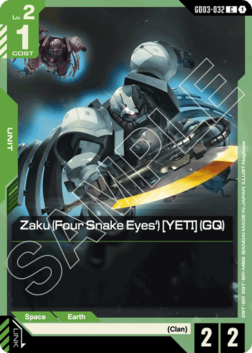 Zaku (Four Snake Eyes') [YETI] (GQ)Normal | GD03-032 | C | $0.09 |