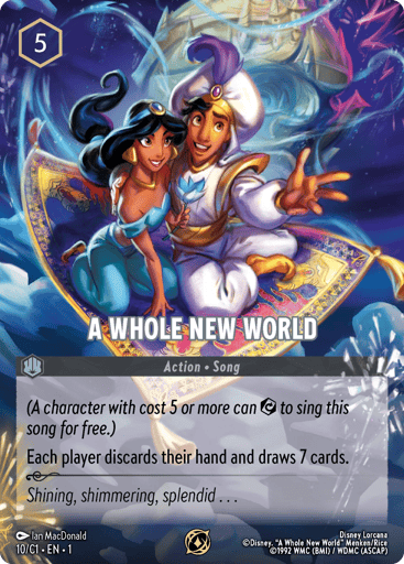 (A character with cost 5 or more can {Exert} to sing this song for free.) Each player discards their hand and draws 7 cards.