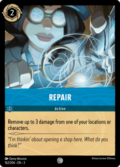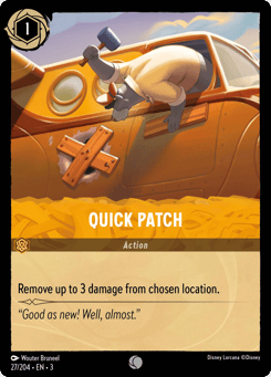 (A character with cost 3 or more can {Exert} to sing this song for free.) Remove up to 3 damage from chosen character. Draw a card.
