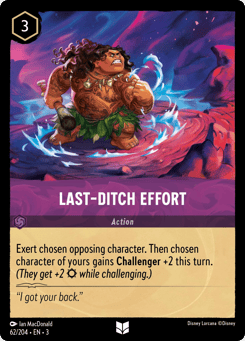 Exert chosen opposing character. Then chosen character of yours gains Challenger +2 this turn. (They get +2 {Strength} while challenging.)