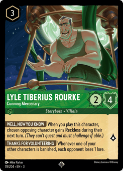 Banish one of your characters with Reckless to banish chosen character with less {Strength} than that character.