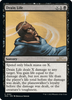 Spend only black mana on X. Drain Life deals X damage to any target. You gain life equal to the damage dealt, but not more life than the player's life total before the damage was dealt, the planeswalker's loyalty before the damage was dealt, or the creature's toughness.