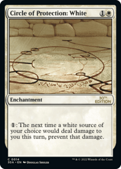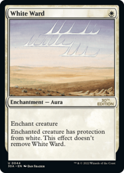 Enchant creature Enchanted creature has protection from white. This effect doesn't remove this Aura.