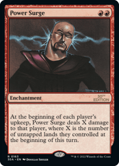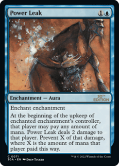 Enchant enchantment At the beginning of the upkeep of enchanted enchantment's controller, that player may pay any amount of mana. This Aura deals 2 damage to that player. Prevent X of that damage, where X is the amount of mana that player paid this way.