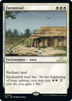 Enchant land Enchanted land has "At the beginning of your upkeep, you may pay {W}{W}. If you do, you gain 1 life."