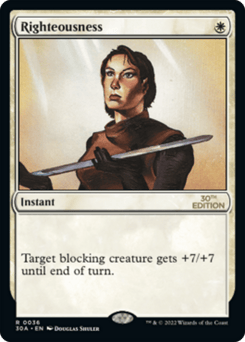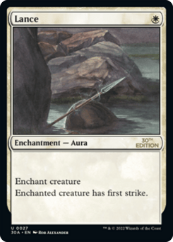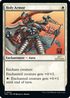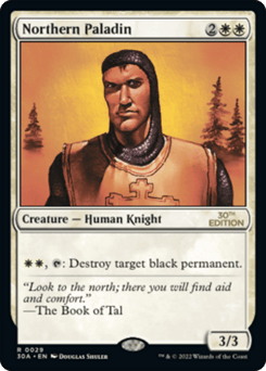 First strike (This creature deals combat damage before creatures without first strike.) Protection from white (This creature can't be blocked, targeted, dealt damage, or enchanted by anything white.)
