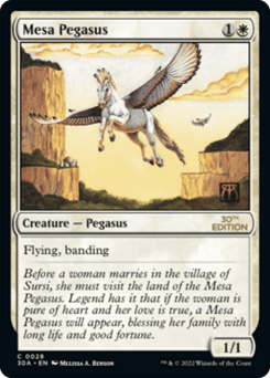 Flying; banding (Any creatures with banding, and up to one without, can attack in a band. Bands are blocked as a group. If any creatures with banding you control are blocking or being blocked by a creature, you divide that creature's combat damage, not its controller, among any of the creatures it's being blocked by or is blocking.)