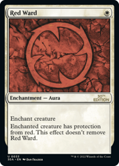 Enchant creature Enchanted creature has protection from red. This effect doesn't remove this Aura.