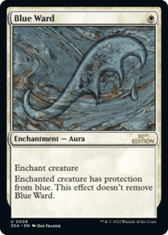 Enchant creature Enchanted creature has protection from blue. This effect doesn't remove this Aura.