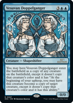 You may have this creature enter as a copy of any creature on the battlefield, except it doesn't copy that creature's color and it has "At the beginning of your upkeep, you may have this creature become a copy of target creature, except it doesn't copy that creature's color and it has this ability."