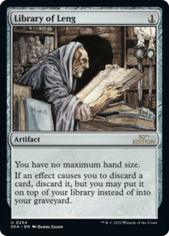 You have no maximum hand size. If an effect causes you to discard a card, discard it, but you may put it on top of your library instead of into your graveyard.
