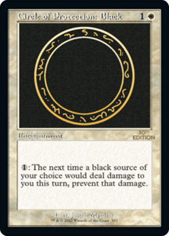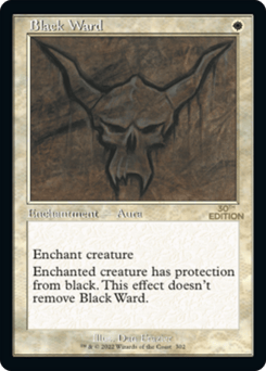 Enchant creature Enchanted creature has protection from black. This effect doesn't remove this Aura.