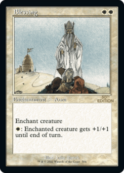 Enchant creature Enchanted creature has protection from blue. This effect doesn't remove this Aura.