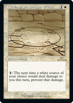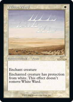 Enchant creature Enchanted creature has protection from white. This effect doesn't remove this Aura.