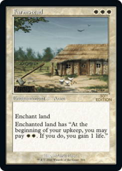 Enchant land Enchanted land has "At the beginning of your upkeep, you may pay {W}{W}. If you do, you gain 1 life."