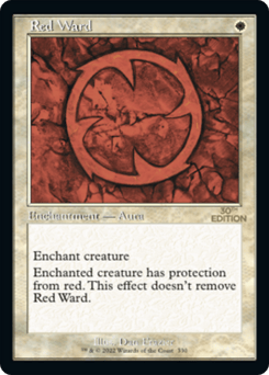 Enchant creature Enchanted creature has protection from red. This effect doesn't remove this Aura.