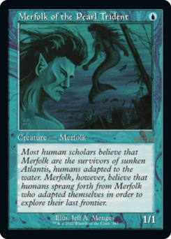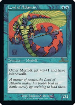 Other Merfolk get +1/+1 and have islandwalk. (They can't be blocked as long as defending player controls an Island.)