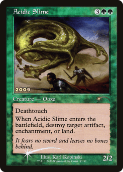Deathtouch (Any amount of damage this deals to a creature is enough to destroy it.) When this creature enters, destroy target artifact, enchantment, or land.