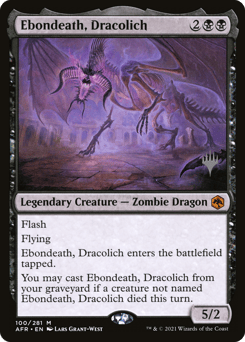 Flash Flying Ebondeath enters tapped. You may cast this card from your graveyard if a creature not named Ebondeath, Dracolich died this turn.