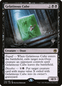 Engulf — When this creature enters, exile target non-Ooze creature an opponent controls until this creature leaves the battlefield. Dissolve — {X}{B}: Put target creature card with mana value X exiled with this creature into its owner's graveyard.