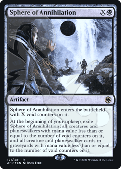 This artifact enters with X void counters on it. At the beginning of your upkeep, exile this artifact, all creatures and planeswalkers with mana value less than or equal to the number of void counters on it, and all creature and planeswalker cards in graveyards with mana value less than or equal to the number of void counters on it.