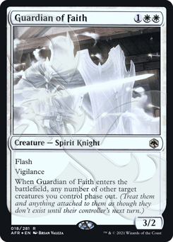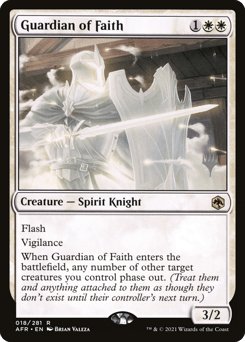 Flash Vigilance When this creature enters, any number of other target creatures you control phase out. (Treat them and anything attached to them as though they don't exist until their controller's next turn.)
