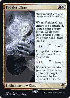 (Gain the next level as a sorcery to add its ability.) When this Class enters, search your library for an Equipment card, reveal it, put it into your hand, then shuffle. {1}{R}{W}: Level 2 Equip abilities you activate cost {2} less to activate. {3}{R}{W}: Level 3 Whenever a creature you control attacks, up to one target creature blocks it this combat if able.