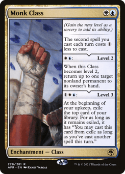 (Gain the next level as a sorcery to add its ability.) The second spell you cast each turn costs {1} less to cast. {W}{U}: Level 2 When this Class becomes level 2, return up to one target nonland permanent to its owner's hand. {1}{W}{U}: Level 3 At the beginning of your upkeep, exile the top card of your library. For as long as it remains exiled, it has "You may cast this card from exile as long as you've cast another spell this turn."