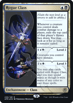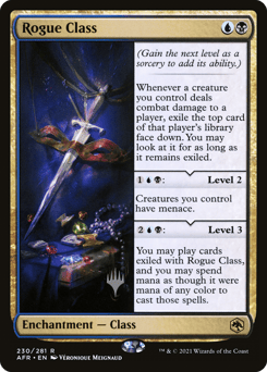 (Gain the next level as a sorcery to add its ability.) Whenever a creature you control deals combat damage to a player, exile the top card of that player's library face down. You may look at it for as long as it remains exiled. {1}{U}{B}: Level 2 Creatures you control have menace. {2}{U}{B}: Level 3 You may play cards exiled with this Class, and you may spend mana as though it were mana of any color to cast those spells.