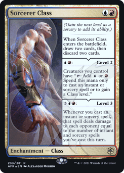 (Gain the next level as a sorcery to add its ability.) When this Class enters, draw two cards, then discard two cards. {U}{R}: Level 2 Creatures you control have "{T}: Add {U} or {R}. Spend this mana only to cast an instant or sorcery spell or to gain a Class level." {3}{U}{R}: Level 3 Whenever you cast an instant or sorcery spell, that spell deals damage to each opponent equal to the number of instant and sorcery spells you've cast this turn.