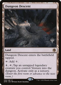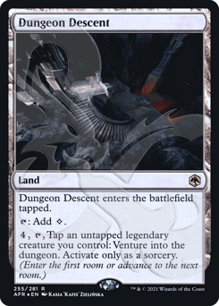 This land enters tapped. {T}: Add {C}. {4}, {T}, Tap an untapped legendary creature you control: Venture into the dungeon. Activate only as a sorcery. (Enter the first room or advance to the next room.)