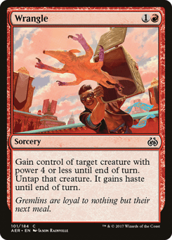 Gain control of target creature with power 4 or less until end of turn. Untap that creature. It gains haste until end of turn.