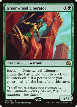 Double strike Revolt — At the beginning of your end step, if a permanent left the battlefield under your control this turn, put a +1/+1 counter on this creature.