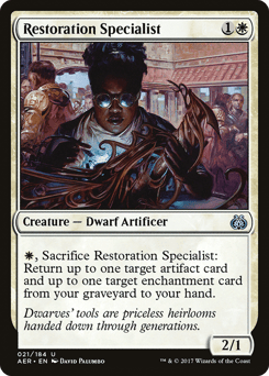 {W}, Sacrifice this creature: Return up to one target artifact card and up to one target enchantment card from your graveyard to your hand.