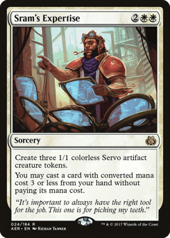 Create three 1/1 colorless Servo artifact creature tokens. You may cast a spell with mana value 3 or less from your hand without paying its mana cost.
