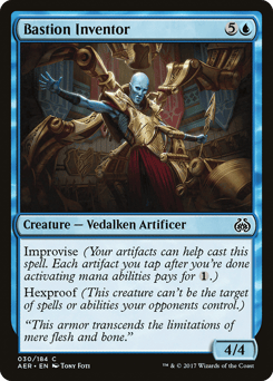 Improvise (Your artifacts can help cast this spell. Each artifact you tap after you're done activating mana abilities pays for {1}.) Hexproof (This creature can't be the target of spells or abilities your opponents control.)