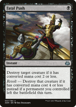 Destroy target creature if it has mana value 2 or less. Revolt — Destroy that creature if it has mana value 4 or less instead if a permanent left the battlefield under your control this turn.