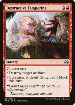 Choose one — • Destroy target artifact. • Creatures without flying can't block this turn.