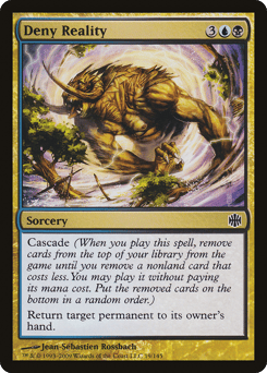 Cascade (When you cast this spell, exile cards from the top of your library until you exile a nonland card that costs less. You may cast it without paying its mana cost. Put the exiled cards on the bottom in a random order.) Return target permanent to its owner's hand.