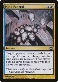 Target opponent reveals cards from the top of their library until four land cards are revealed. That player puts all cards revealed this way into their graveyard.