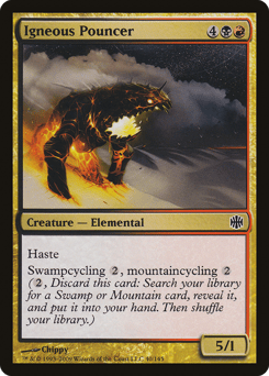 Haste Swampcycling {2}, mountaincycling {2} ({2}, Discard this card: Search your library for a Swamp or Mountain card, reveal it, put it into your hand, then shuffle.)