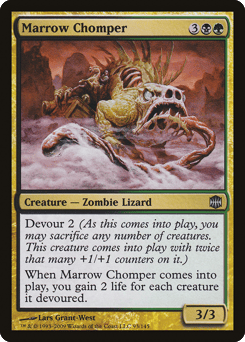 Devour 2 (As this creature enters, you may sacrifice any number of creatures. It enters with twice that many +1/+1 counters on it.) When this creature enters, you gain 2 life for each creature it devoured.