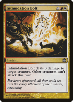 Intimidation Bolt deals 3 damage to target creature. Other creatures can't attack this turn.