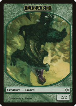 At the beginning of each opponent's end step, if that player didn't cast a creature spell this turn, create a 2/2 green Lizard creature token.
