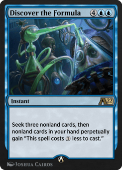 Seek three nonland cards, then nonland cards in your hand perpetually gain "This spell costs {1} less to cast."