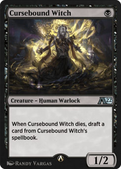When Cursebound Witch dies, draft a card from Cursebound Witch's spellbook.