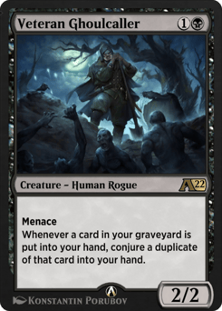 Menace Whenever a card in your graveyard is put into your hand, conjure a duplicate of that card into your hand.