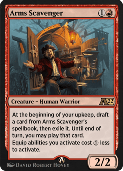 At the beginning of your upkeep, draft a card from this creature's spellbook, then exile it. Until end of turn, you may play that card. Equip abilities you activate cost {1} less to activate.