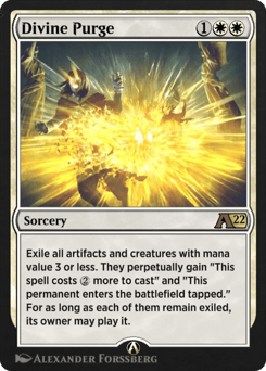 Exile all artifacts and creatures with mana value 3 or less. They perpetually gain "This spell costs {2} more to cast" and "This permanent enters the battlefield tapped." For as long as each of them remain exiled, its owner may play it.